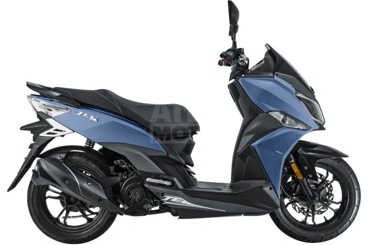 - * Привлекательный внешний вид. Матовый сине-серый окрас подчёркивает современный стиль скутера. Такой цвет практичен, не маркий и отлично смотрится как днём, так и при вечернем освещении.